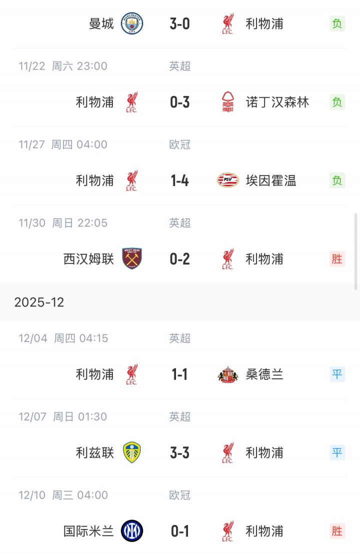 这4场之前,利物浦则是三连败。