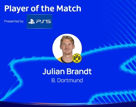 梅开二度,官方:布兰特当选多特2-2博德闪耀全场最佳球员